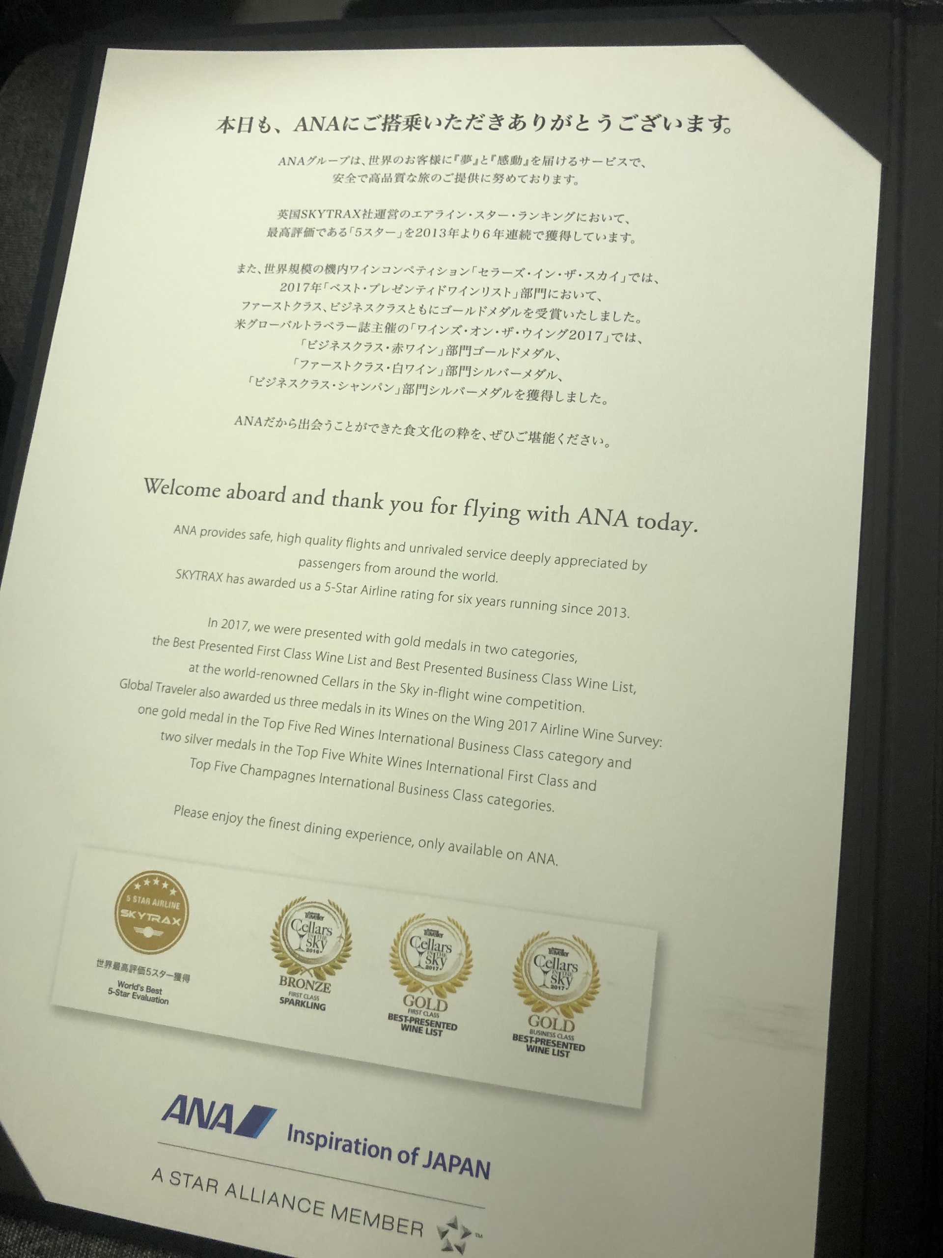 ANA First Class: ORD-HND